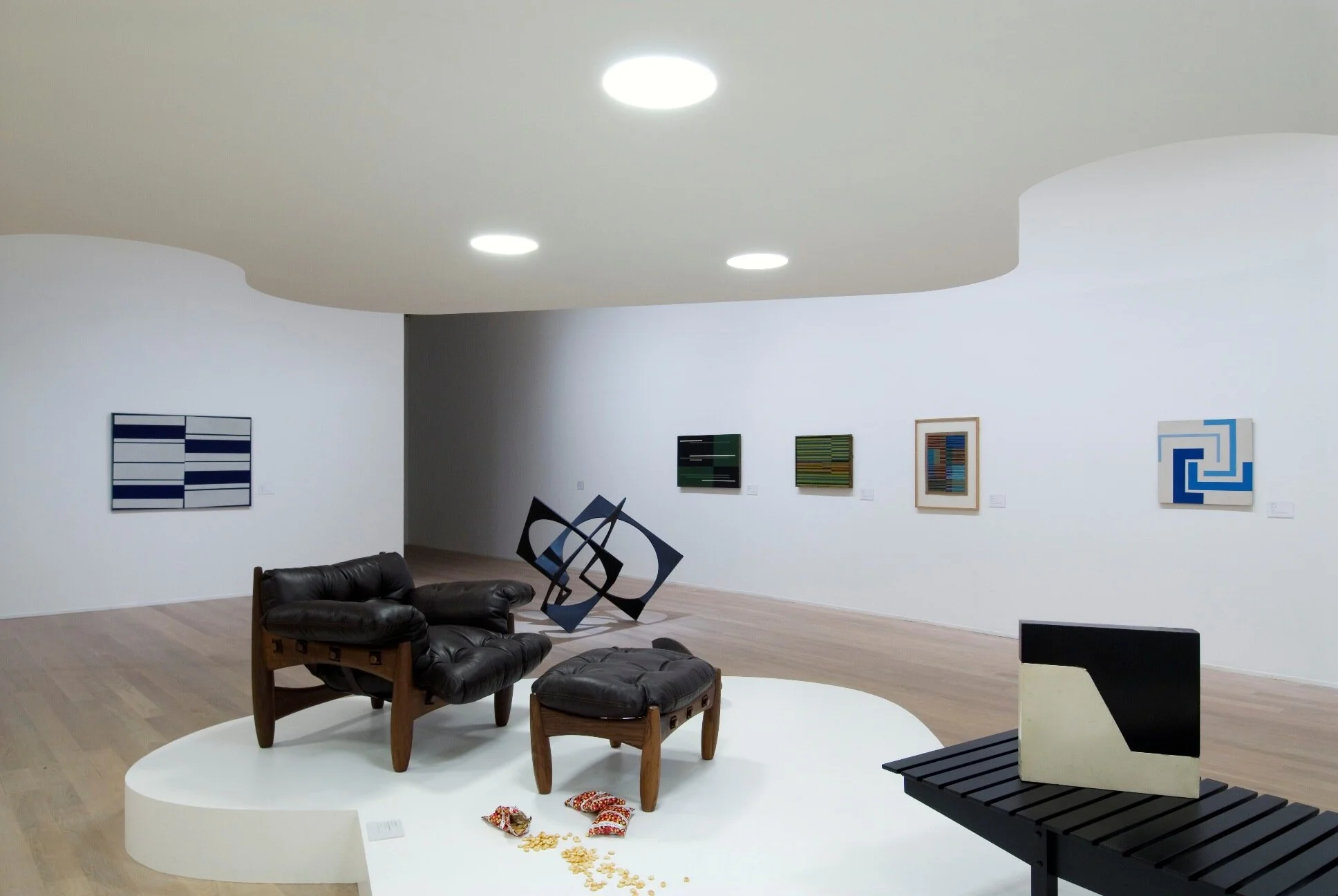 This was the first in a series of three exhibitions celebrating the Moderna Museet’s 50th Anniversary. The all in all 700 sq.m. exhibition curated by Paolo Venancio Filho, investigated the flourishing creative scene in the visual arts in Rio de Janeiro while also including the design and architecture of the time. The exhibition architecture set the tone of Rio in the late 50s already in the lobby, through the use of colours and shapes echoing the forms landscape architect Burle Marx used for his design of the seafront in Rio, followed by display plinth and ceiling in the first room, inspired by Oscar Niemeyer’s Canoas House in the suburb of Rio.
